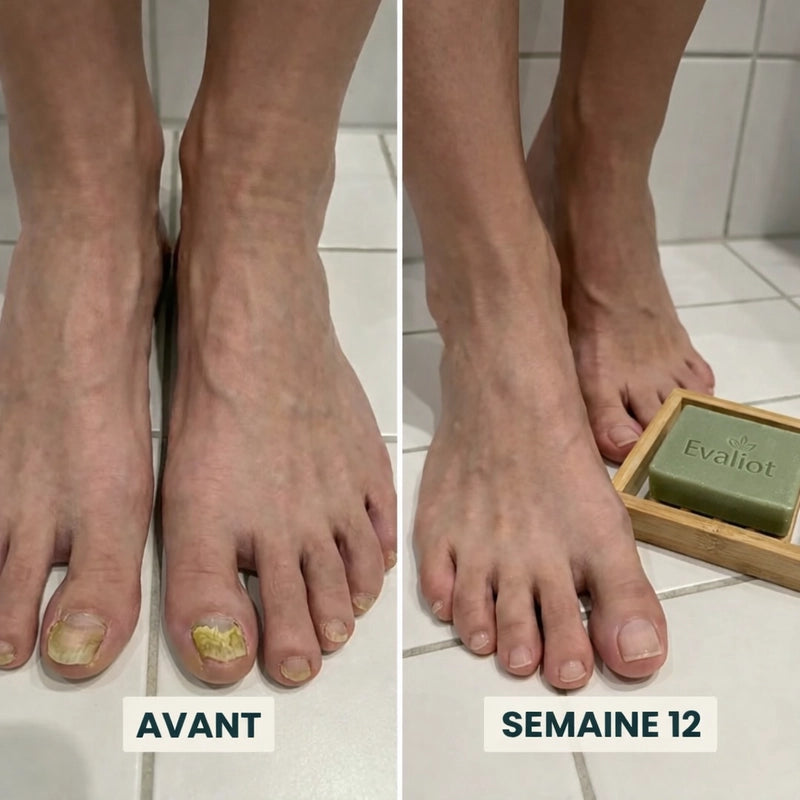 La différence clé : Evaliot élimine le champignon à la racine et les spores, pas seulement les symptômes de surface. Les crèmes hydratent mais ne pénètrent pas assez profondément. Notre savon contient des agents antifongiques naturels puissants qui atteignent les zones infectées que les autres produits ne peuvent pas traiter.
